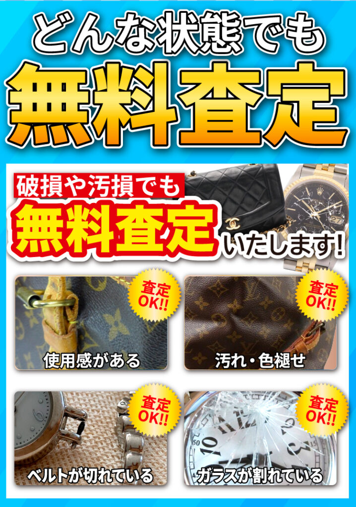 お品物の名前や種類、状態、またはブランド名、型番などの情報があると、概ねの査定額をお伝えできるかと思います。