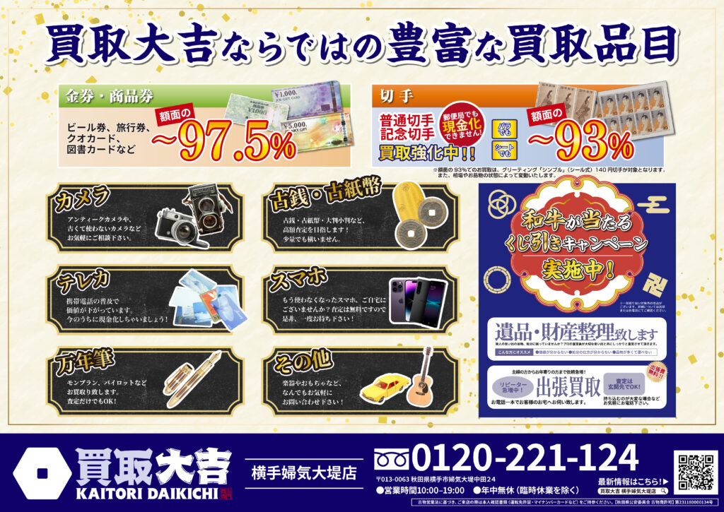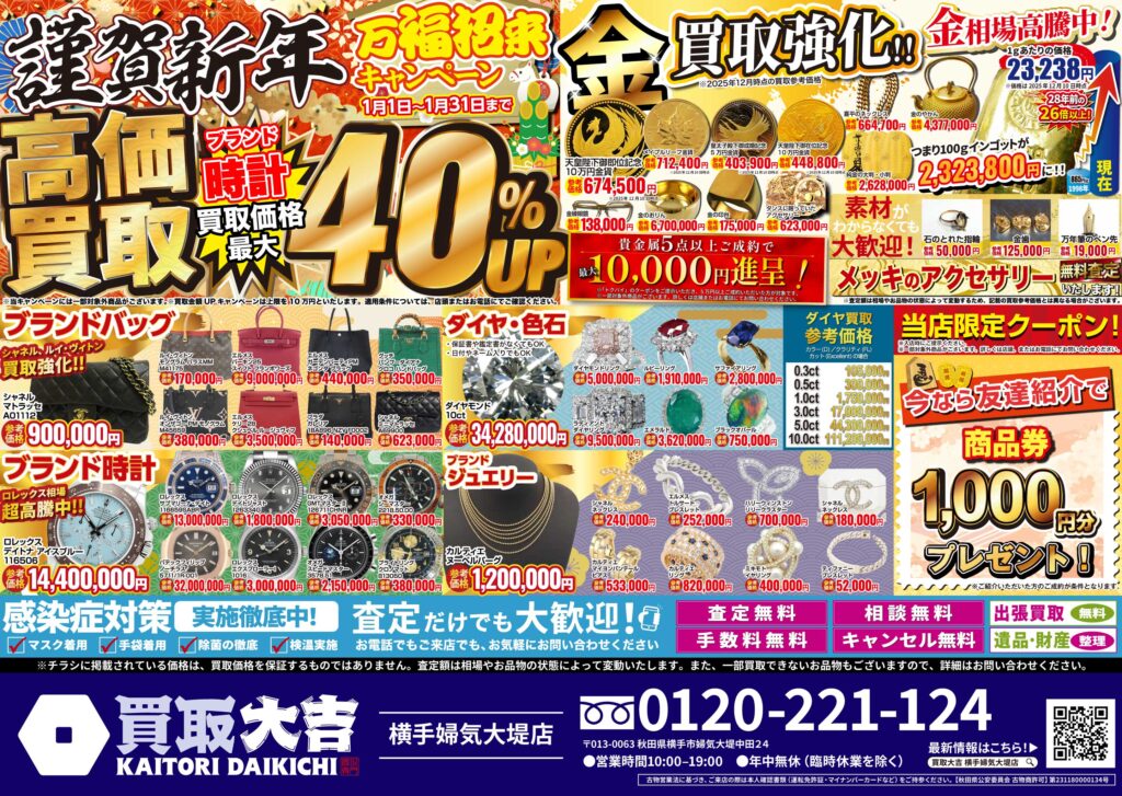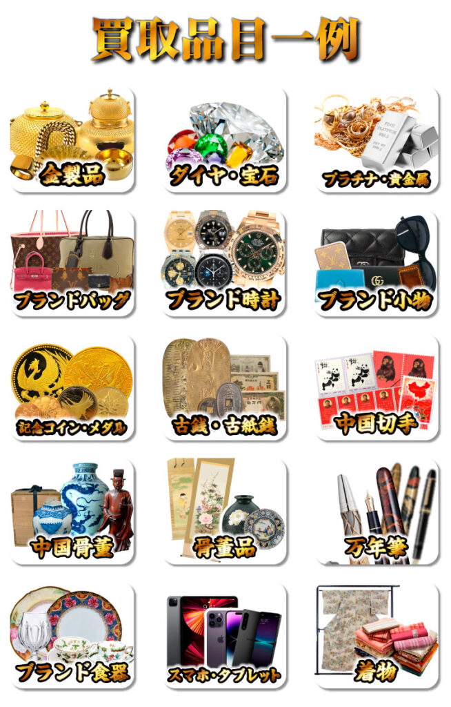 金・貴金属・ブランド品はもちろん、お値段がつくか迷われているものも是非お持ちください。